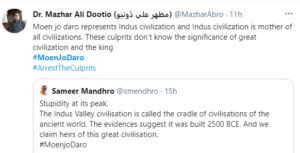 Mazhar Ali Dootio said in his tweet said, “this is bad attitude developing in Sindh. Mohen Jo Daro is our identity.